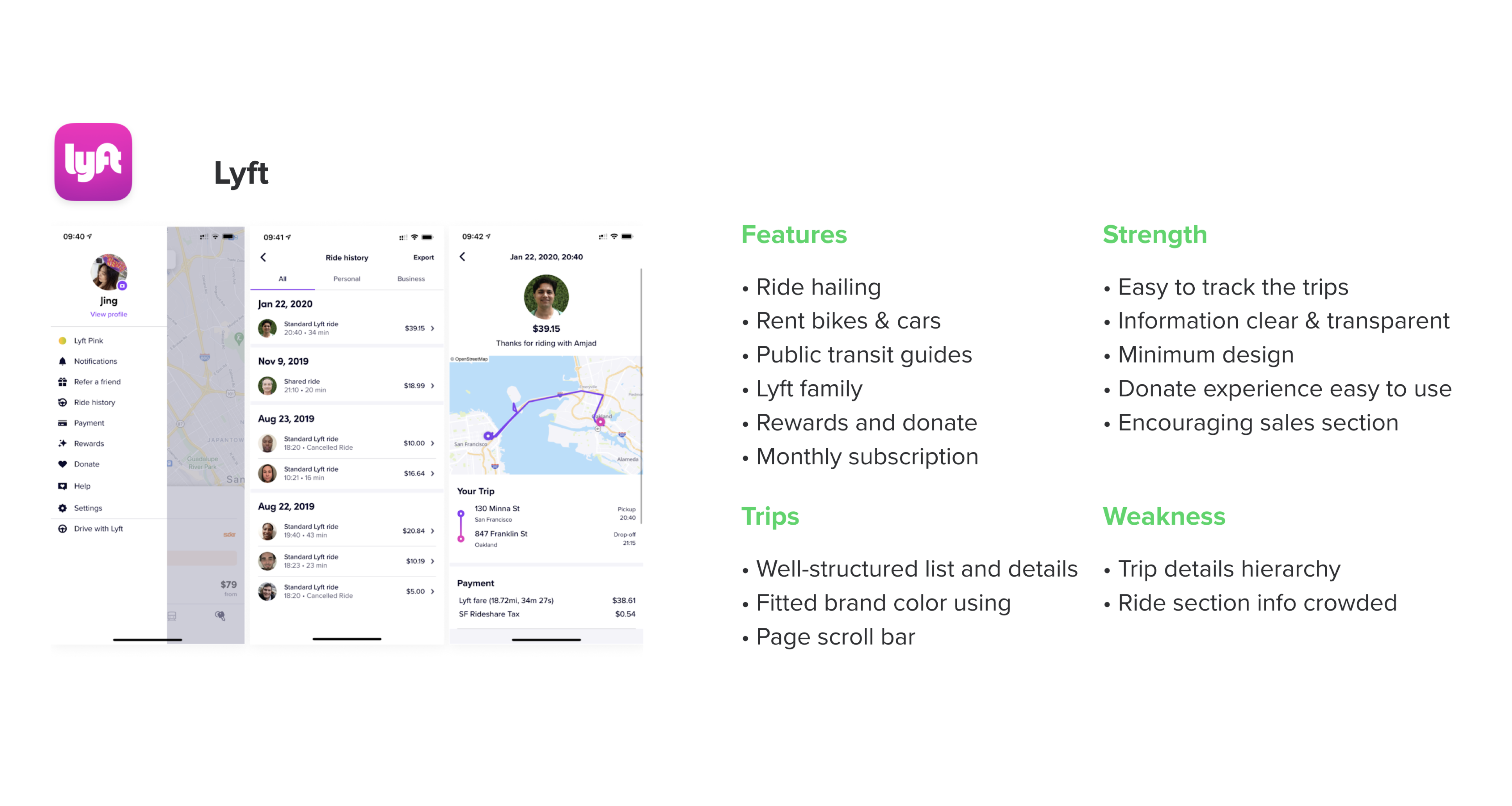 And others enterprises like Lyft which has a well-structured trip list and details.