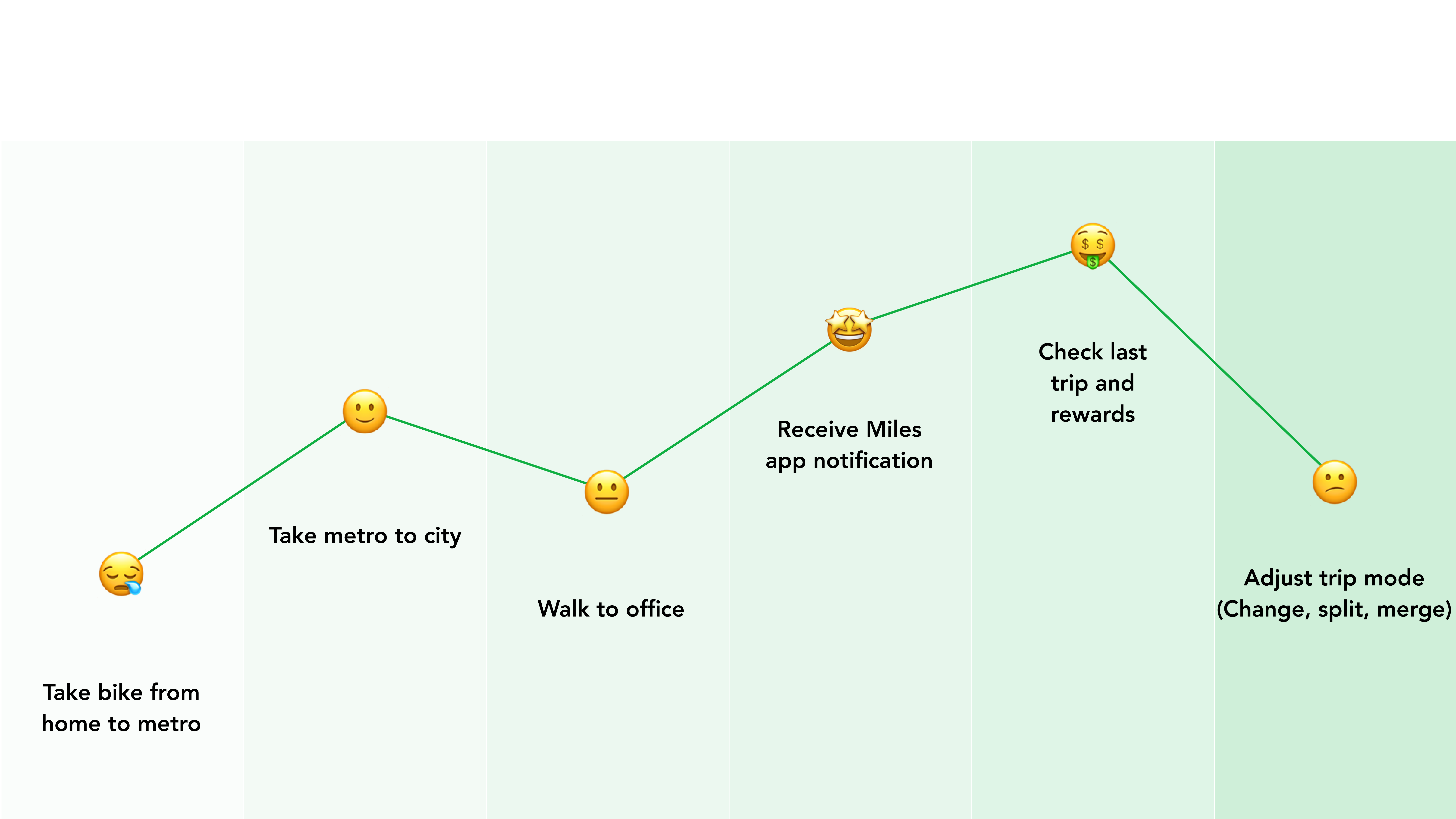 To understand Mileās product goals and business strategy, I read an interview with PhocusWire. According to the article, Miles aims to accompany the users for every trip they make in the physical world, seamlessly awarding them miles without requiring any action on their part. By researching about the company, I was able to learn Mileās user base and business & design goals.