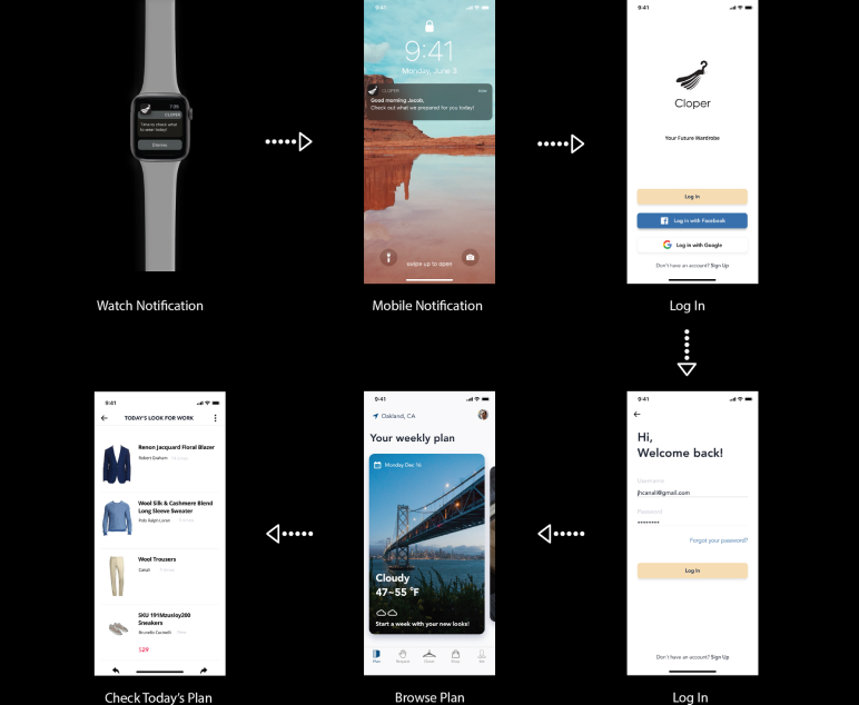 Cloper app is our customers' premiere wardrobe management system application, user could easily check weekly styling plans, request items, browse their closets, and buy new items.
