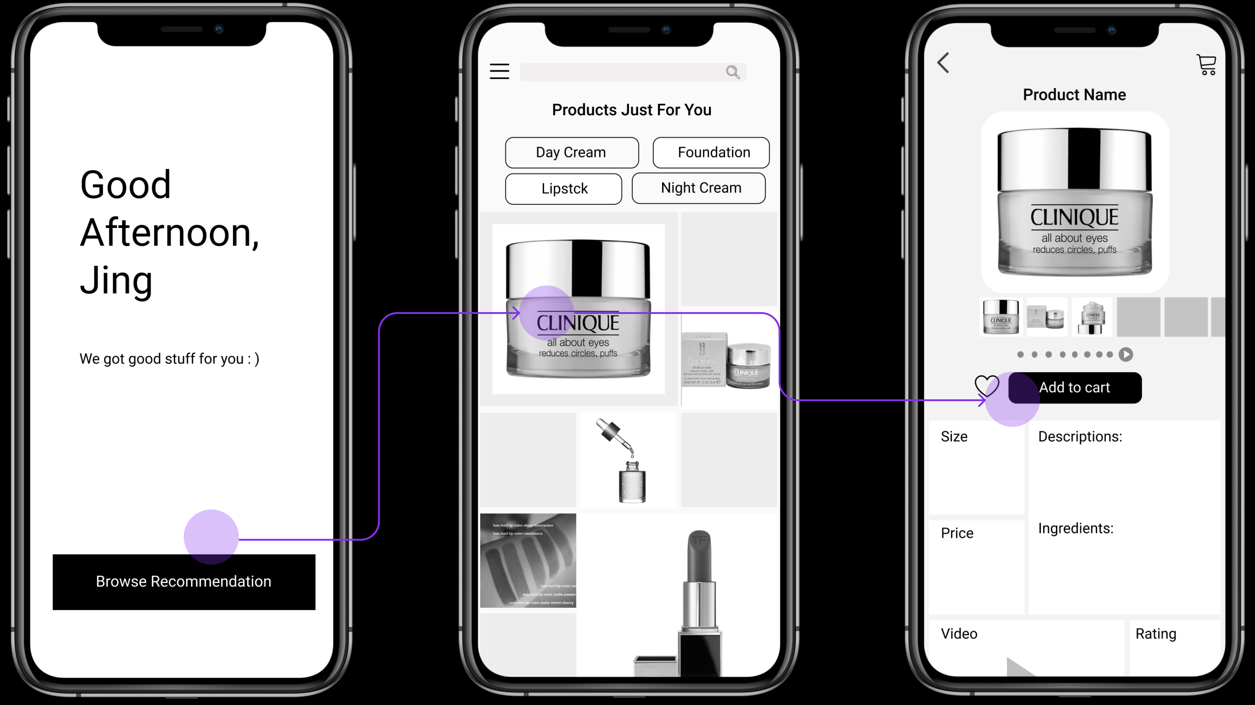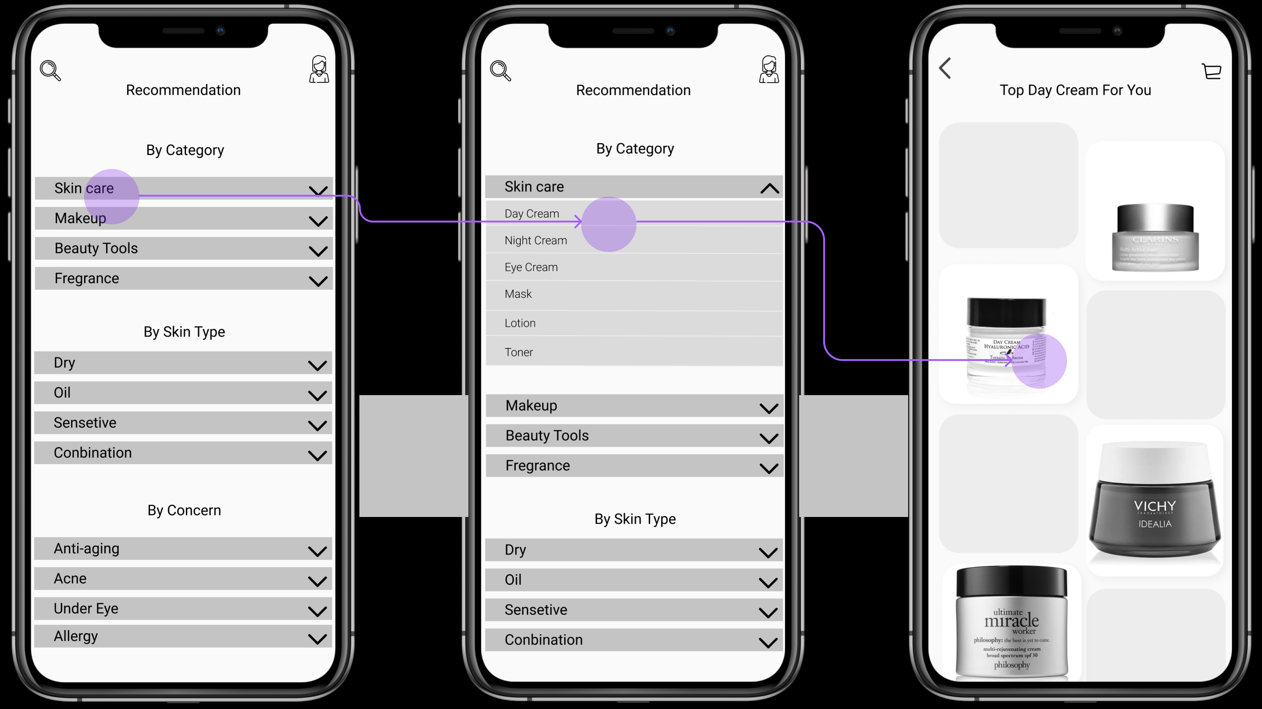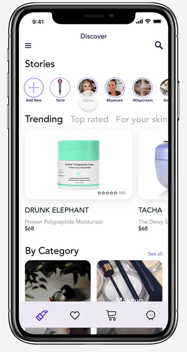 The goal of this project was to create a beauty shopping application through a full design process that connects potential customers and builds trust with a fluent and accurate shopping experience.