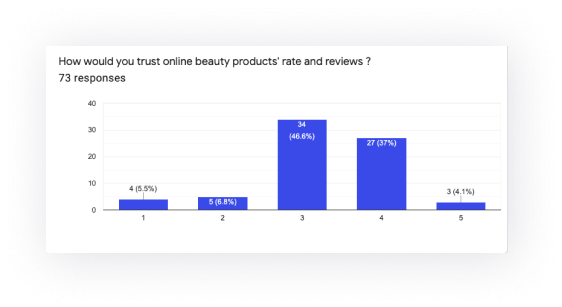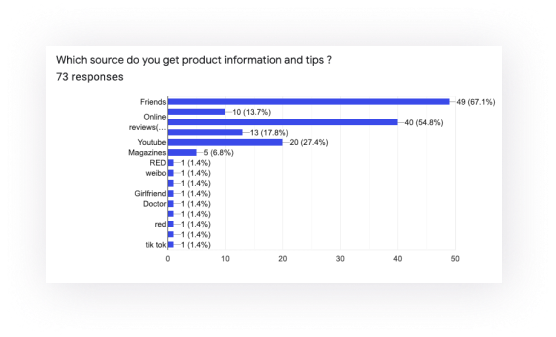 Created and shared the online survey to know more about their online beauty shopping behavior & pain points. Here I took some of the questions that may have key insights we could learn from it.