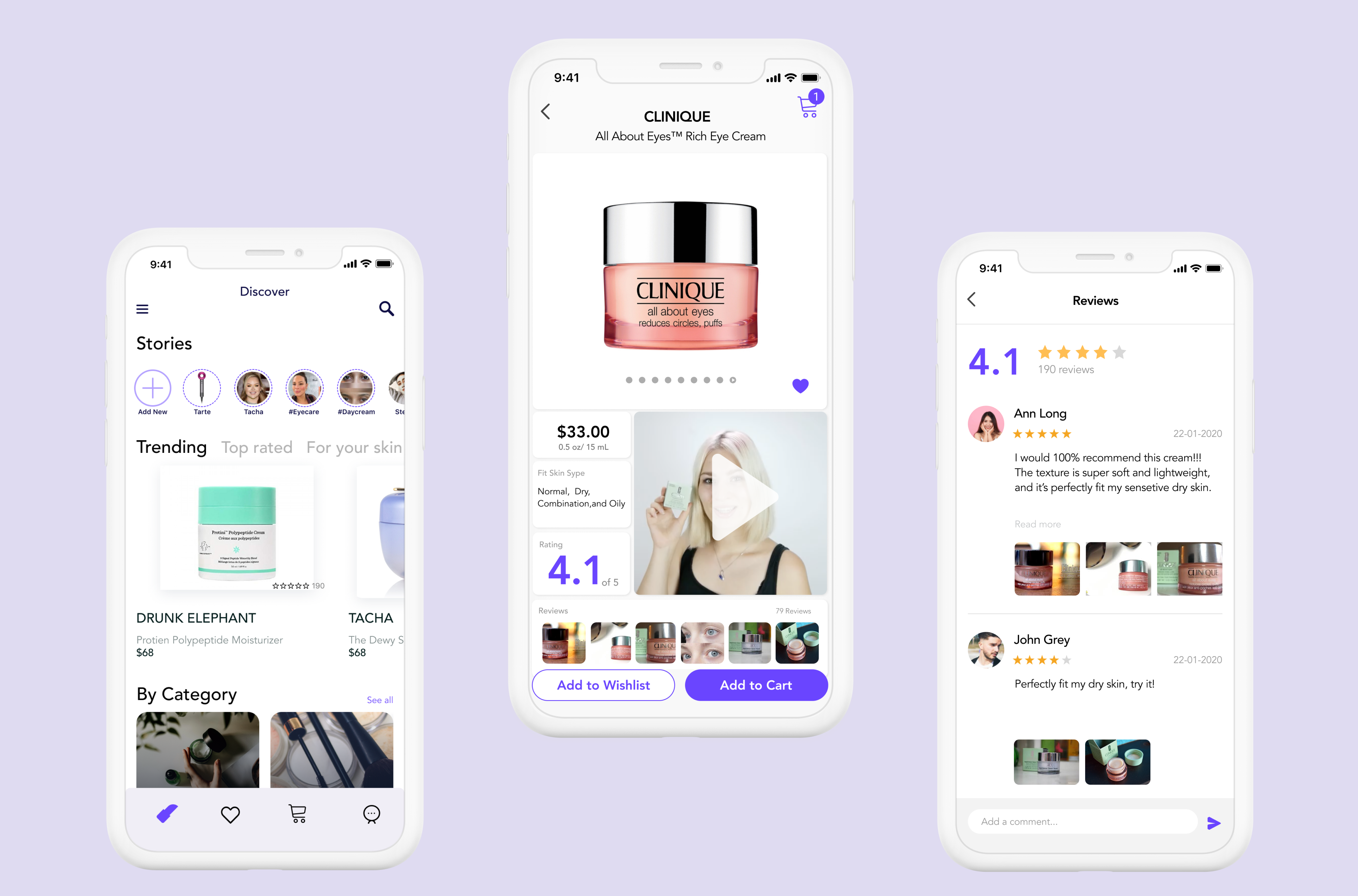 Create a selected beauty products e-commerce shopping application with high-quality images/videos and accurate user rating reviews that offers users a concern-free shopping experience to purchase what fits them.