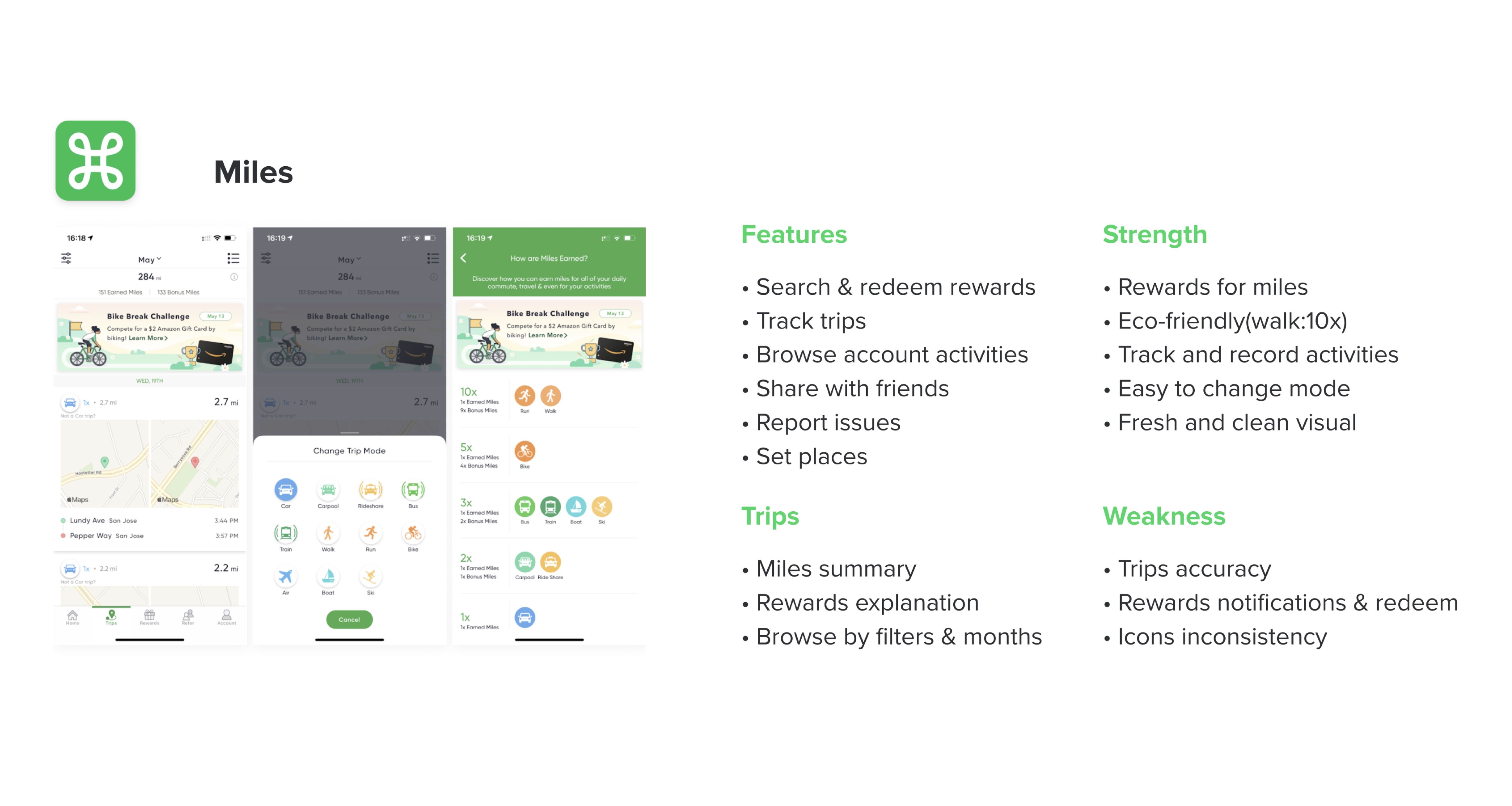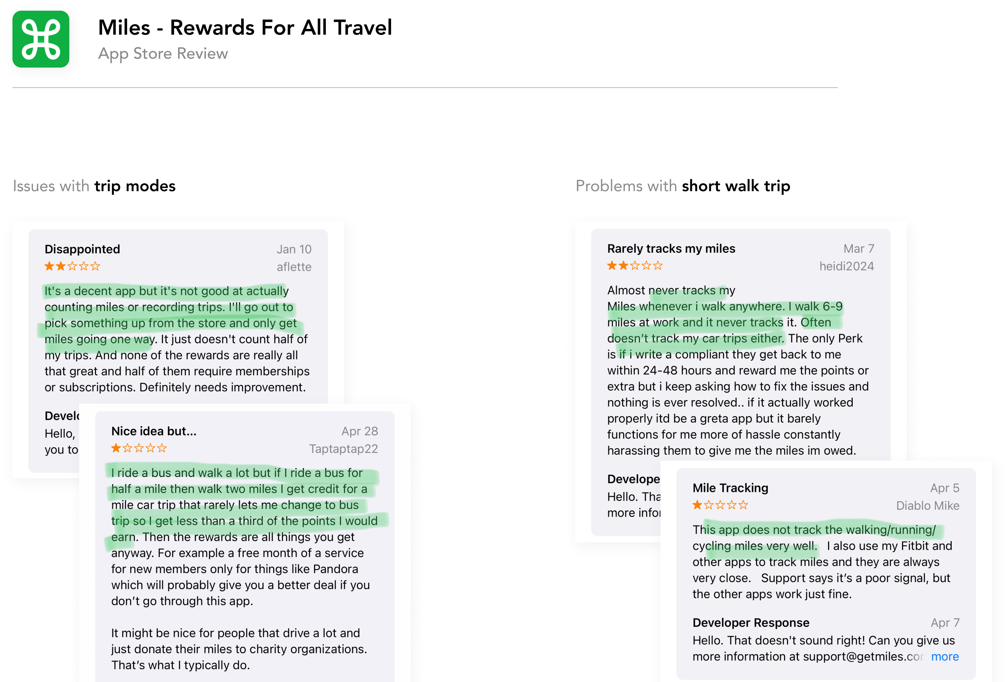 To understand Mileās product goals and business strategy, I read an interview with PhocusWire. According to the article, Miles aims to accompany the users for every trip they make in the physical world, seamlessly awarding them miles without requiring any action on their part. By researching about the company, I was able to learn Mileās user base and business & design goals.