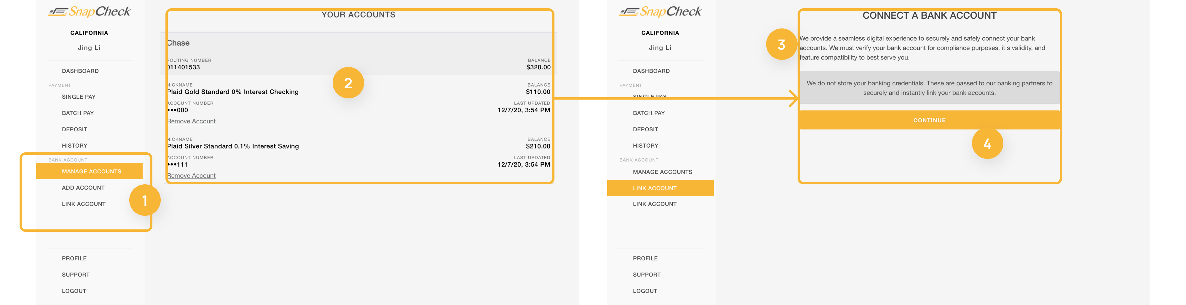 In navbar, we have to Manage Account in the bank account section, and then we also have repeat Add Bank and Link Bank listed below?