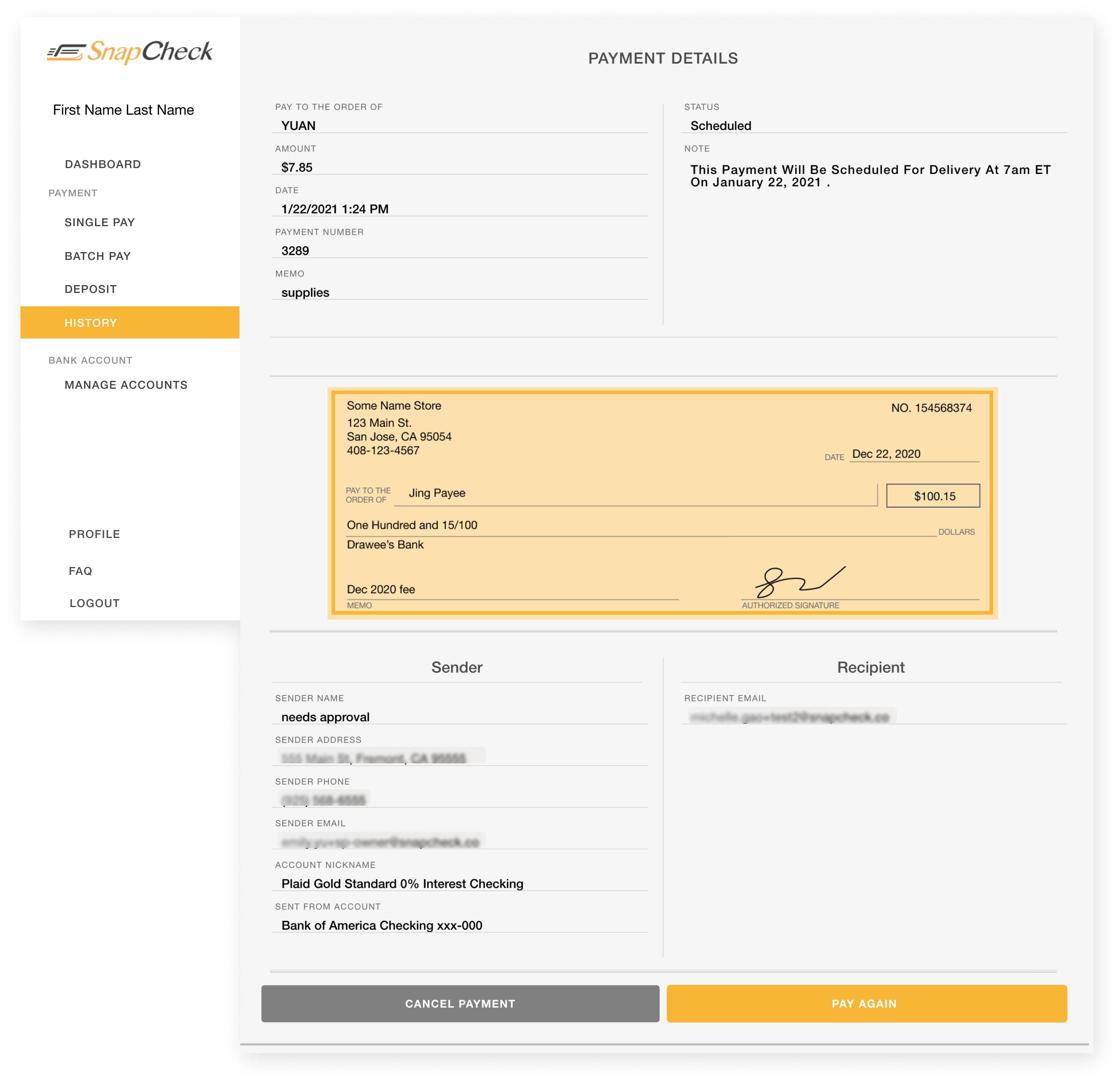 SnapCheck is paperless digital check technology for B2B electronic check payments. Providing fast, secure, cost-effective paperless check payments for the enterprise.